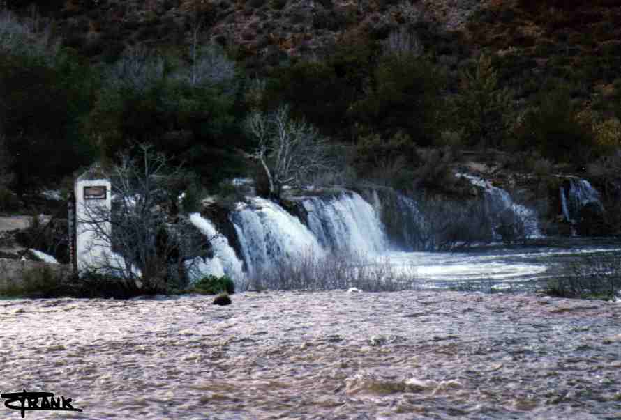 una barrera tobácea de mas de 500 m de longitud. En este punto